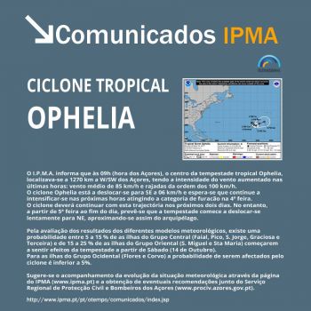 O Serviço Regional de Proteção Civil e Bombeiros dos Açores informa que, segundo o Instituto Português do Mar e da Atmosfera, uma superfície frontal fria com atividade moderada a forte vai agravar o estado do te...