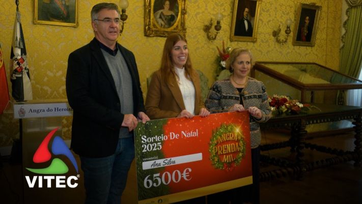 Já foi entregue o prémio final de 6500 euros do Sorteio de Natal "Angra Prendas Mil". Uma parceria bem sucedida entre a Câmara Municipal e a Câmara do Comércio e Indústria de Angra do Heroísmo. Este ano, com melhores resultados, comparando com 2024.